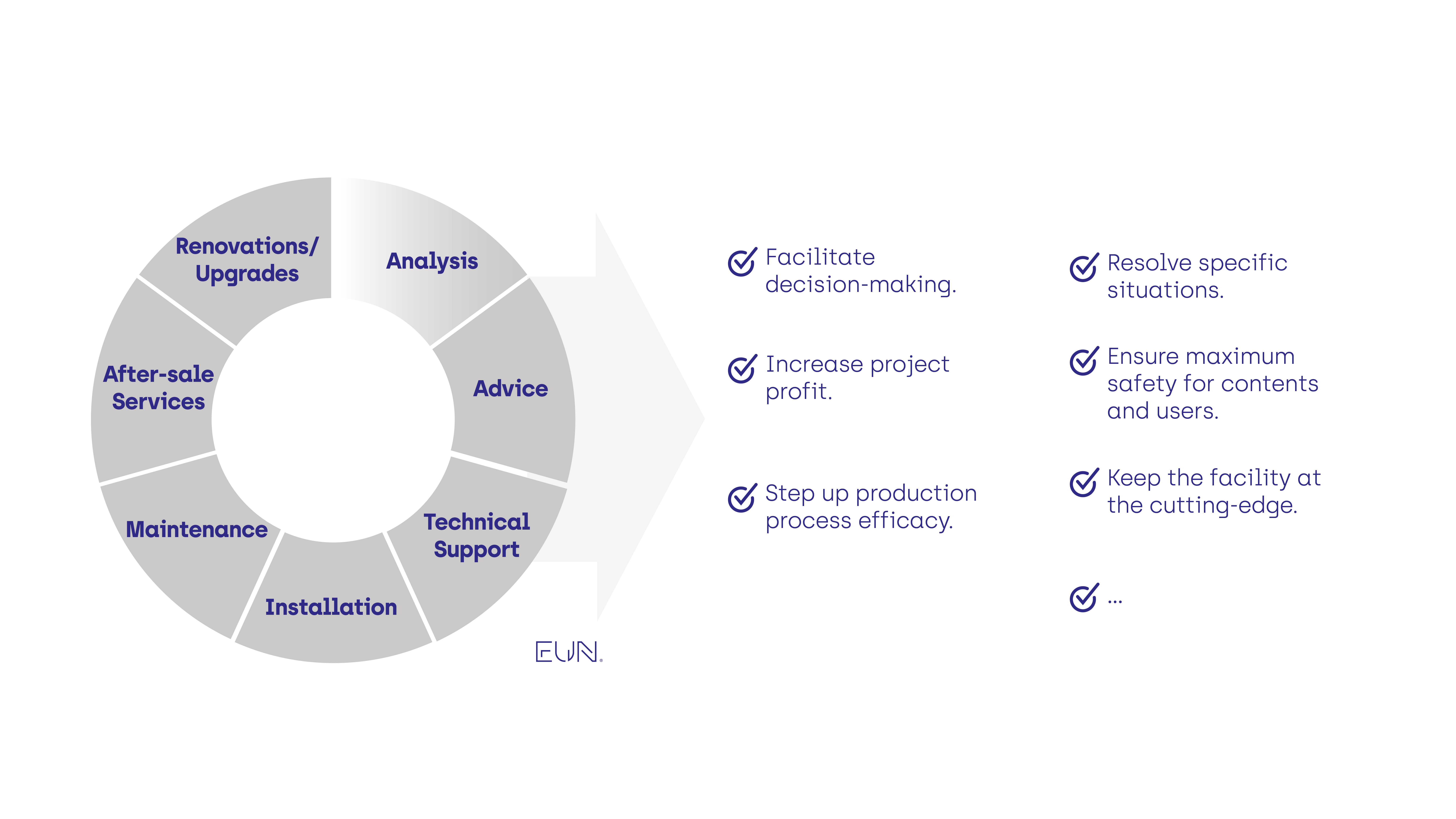 Our developments across innovation, 4.0 manufacturing and sustainable and digital management allow EUN to provide an expert and personalised service of maximum efficacy and quality to all our customers and over the entire lifecycle.